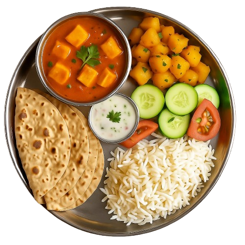 1 Dal, 1 Sabji, 4 Chapatis, Rice, Raita and Salad